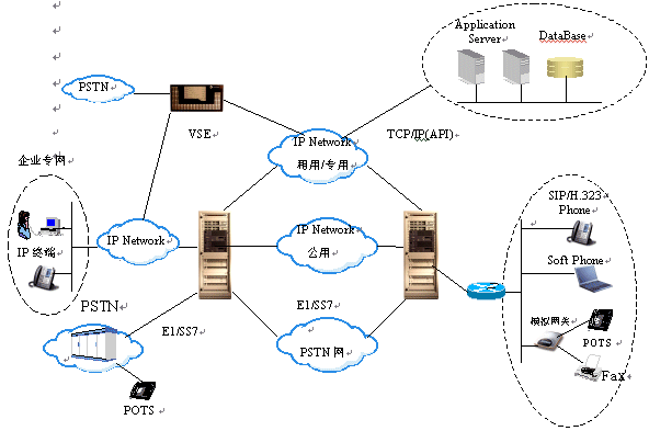ESE/VSE作為電路到IP的接入網(wǎng)關(guān),可提供PSTN與IP網(wǎng)的互通。做為軟交換機,可建設(shè)全I(xiàn)P方式的電話網(wǎng)絡(luò),并實現(xiàn)呼叫處理,路由,業(yè)務(wù)實現(xiàn)等功能。