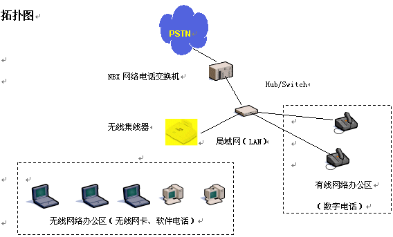 隨著信息時代的來臨,電話、電腦成了辦公領(lǐng)域的重要工具,人們在辦公室通過計算機網(wǎng)絡共享數(shù)據(jù)資源、傳遞數(shù)據(jù)信息,彼此間通過電話言語溝通。在人們享受到高科技帶來的高效率的同時,也感到一些不便,例如計算機網(wǎng)絡、電話網(wǎng)都需要單獨鋪設專用的線路,線路的變更往往是讓人心煩的事情。隨著各公司推出無線局域網(wǎng)絡解決方案(AirConnect)和NBX網(wǎng)絡電話交換機平臺的推出,通過無線局域網(wǎng)絡技術(shù),語音、數(shù)據(jù)兩網(wǎng)合一技術(shù),將電腦、電話機合二為一,同時從線路的束縛中解放出來。人們再也不用擔心布線問題,可以隨處移動辦公,享受無線網(wǎng)絡、無線話音,大大提高人們的辦公效率。