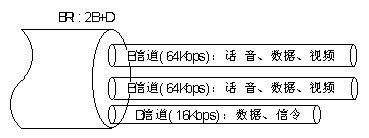 ◆基本速率接口(BRI:Basic Rate Interface),該速率由兩個承載信道和一個數(shù)據(jù)控制信道構(gòu)成,稱為2B+D,其中B(Bearer)為標(biāo)準(zhǔn)PCM速率64kbps,D(Data)為16kbps。該速率適用于家用或小型企業(yè)需要。