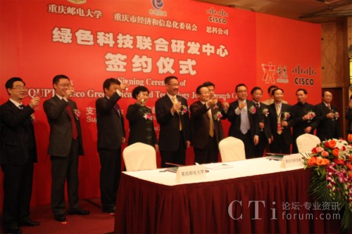 CTI論壇(ctiforum)2月3日消息(記者 潘婷):2月3日上午,思科公司與重慶郵電大學(xué)正式簽訂合作協(xié)議,共建“重慶郵電大學(xué)-思科綠色科技聯(lián)合研究實驗室”!熬G色科技聯(lián)合研究實驗室”的成立是思科履行其致力于推動中國創(chuàng)新和可持續(xù)發(fā)展承諾的重要舉措。此次合作中雙方將共同推動下一代互聯(lián)網(wǎng)、傳感器網(wǎng)絡(luò)以及綠色科技等領(lǐng)域的研發(fā),推進(jìn)應(yīng)用推廣和產(chǎn)業(yè)化發(fā)展,實現(xiàn)產(chǎn)學(xué)研一體化,幫助和支持重慶本土企業(yè)提高綠色科技創(chuàng)新的素質(zhì)和能力,進(jìn)而支持中國發(fā)展綠色經(jīng)濟(jì)、節(jié)能減排的長期戰(zhàn)略。
