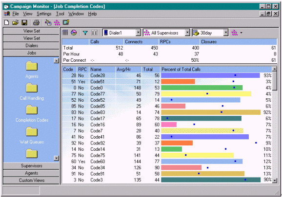監(jiān)視器可顯示圖形化的統(tǒng)計信息,使您能夠?qū)δ臄?shù)據(jù)一目了然。它還提供了顯示格式選擇,包括餅形圖、條形圖或趨勢線。您甚至可以隨時查看所有業(yè)務(wù)代表的圖形化狀態(tài)信息。為協(xié)助實現(xiàn)更為有效的聯(lián)絡(luò)中心管理,管理員可以同時設(shè)置視覺及音頻警告,并在活動或業(yè)務(wù)代表績效的某些特性到達時觸發(fā)--例如當某一業(yè)務(wù)代表超過了特定的交談時間時,或者當某一活動達到了預(yù)設(shè)目標時。
