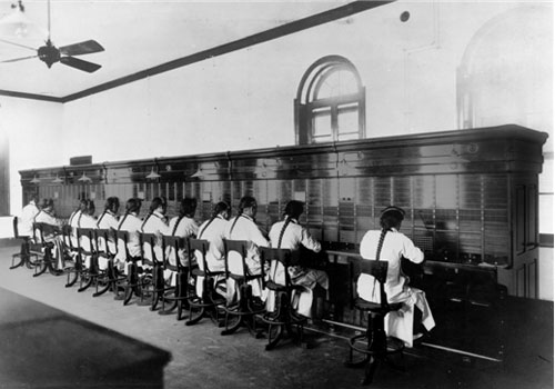 資料照片:1911年11月電話局設答問處,也就是現(xiàn)在的“號碼查詢臺”。1950年郵電部電信總局對市話業(yè)務臺號碼進行重新編排劃一:查號臺號碼為“04”號。1961年全國特種業(yè)務電話號碼,統(tǒng)一規(guī)定改為三位號碼:查號臺號碼定為“114”。