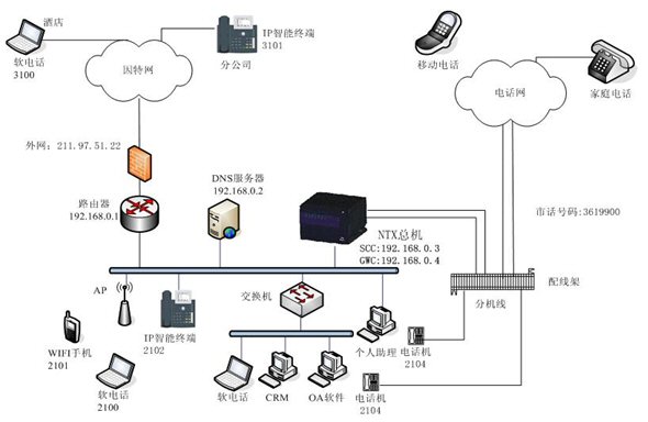 NTX IP融合通信電話總機(jī)網(wǎng)絡(luò)架構(gòu)