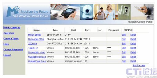 視頻采集端,主要是指負(fù)責(zé)視頻數(shù)據(jù)采集的攝像頭設(shè)備。目前該系統(tǒng)已經(jīng)有效地集成了以下三種類型的攝像頭:i)IP攝像機(jī);ii)