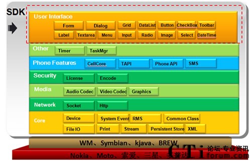 據新太科技內部相關人員介紹,mWAY的技術架構,一方面可以支持電信網絡各種各樣的接入,保證和運營商已有的網絡的互聯互通,同時也支持和移動互聯網手機之間的連接,支持相關音頻、視頻的呼叫、傳送。業(yè)務接口可以給第三方應對研發(fā)需求,手機終端有相關的引擎,滿足手機終端的業(yè)務研發(fā)的需求,這部分有一個手機客戶端軟件,是一個移動性的引擎。這個引擎移植在手機終端客戶端上,給上層提供統一的解析開放系統。