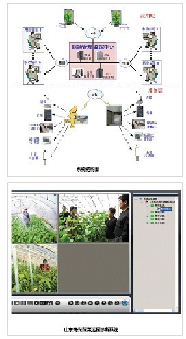 在應用案例中,山東壽光蔬菜遠程診斷系統(tǒng),是基于大唐電信無線EDGE/TD視頻系統(tǒng)平臺的遠程農(nóng)業(yè)專家系統(tǒng)。應用此系統(tǒng),可對大棚里的溫度、濕度進行采集,并疊加到視頻圖像上,進行上傳。農(nóng)業(yè)專家可通過視頻圖像判斷植株生長情況、檢查是否有病蟲害、大棚的溫濕度是否合適,并可以檢測土壤的酸堿度等信息,為農(nóng)戶提供相應的指導,獲得了良好的社會效益和經(jīng)濟效益。