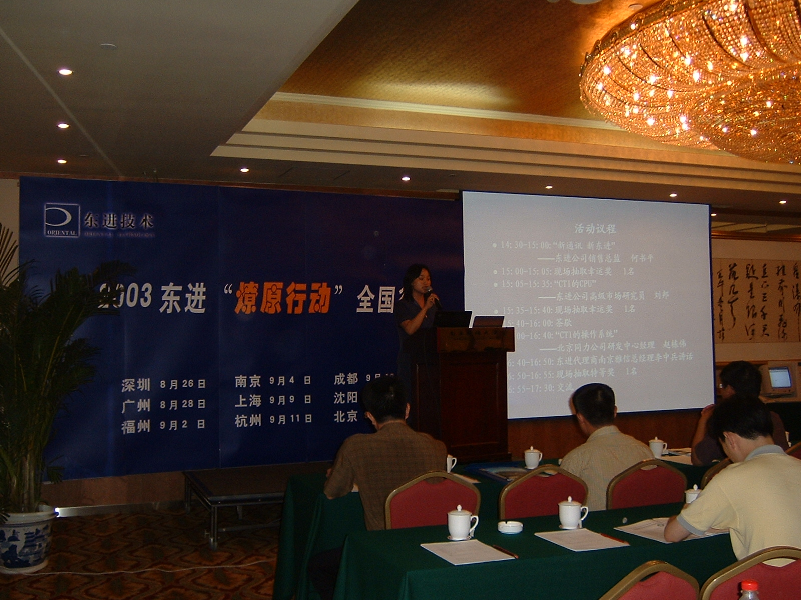 東進(jìn)營(yíng)銷(xiāo)中心市場(chǎng)部經(jīng)理張素貞女士介紹南京站“燎原行動(dòng)”議程