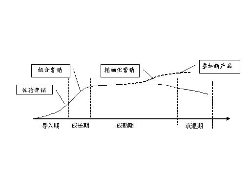漏話業(yè)務(wù)是對(duì)現(xiàn)有基礎(chǔ)電信業(yè)務(wù)的延伸和補(bǔ)充,是建立在基礎(chǔ)通話服務(wù)基礎(chǔ)上的功能型增值業(yè)務(wù),在業(yè)務(wù)推廣中,應(yīng)根據(jù)業(yè)務(wù)的不同的發(fā)展階段,分別在業(yè)務(wù)的導(dǎo)入期、成長(zhǎng)期、發(fā)展期和衰退期采取不同的營(yíng)銷(xiāo)手段和措施,如下圖所示。
