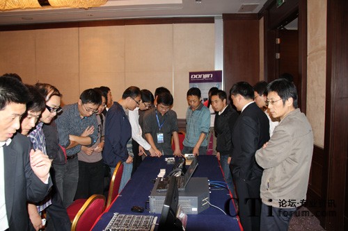茶歇時間,嘉賓迫不及待走到東進(jìn)keygoe產(chǎn)品演示臺參觀,并與東進(jìn)工程師從技術(shù)、產(chǎn)品和應(yīng)用方面熱烈交流,尤其是對東進(jìn)帶來的兩套演示系統(tǒng)興趣濃厚,都有親密接觸一把的興致。