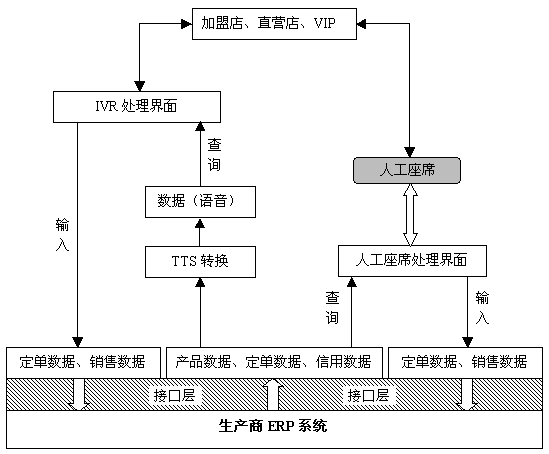 集成項目:與生產(chǎn)商ERP系統(tǒng)集成,增加人工座席應(yīng)用和IVR應(yīng)用