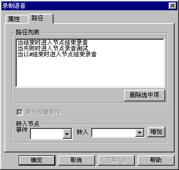有兩種方式,一種是通過(guò)ZingServ的錄制語(yǔ)音模塊來(lái)靈活設(shè)置錄音的起點(diǎn)、終點(diǎn)和錄音長(zhǎng)度,如客戶投訴和客戶建議大都通過(guò)這種方式來(lái),這時(shí)錄音文件的名稱可以使用自定義變量,便于在二次開(kāi)發(fā)中使用。