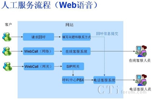 客戶通過Web方式發(fā)起呼叫,與人工座席進(jìn)行語(yǔ)音交流。