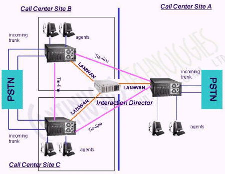 Interaction Director的功能比Interaction Multi-Site還要強大的多,不但支持Interaction Multi-Site的具有的功能外,還支持更大規(guī)模的分布式系統(tǒng)、呼叫前和呼叫后路由(呼叫前路由采用SS7信令,需要電信運營商的支持)以及真正的網(wǎng)絡排隊機(Network ACD)等。Interaction Director通常安裝在一臺單獨的服務器上,用來決定最佳分布點的系統(tǒng)處理來電。Interaction Director可以實時監(jiān)控各個分布點的系統(tǒng)負載,坐席、技能、隊列等狀態(tài)。采用Interaction Director可以方便的實現(xiàn)分布式呼叫中心系統(tǒng)的負載均衡和災難備份。舉例來說,在周末話務量較小的情況下,為節(jié)省資源和運營成本,可以將北京中心的所有來電路由至上海中心處理;又如,上海中心發(fā)生故障,可以將所有來電路由至北京中心處理。
