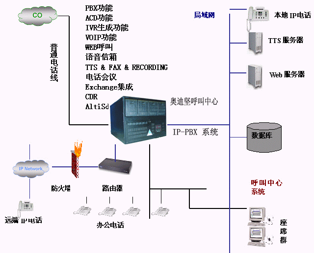 選用美國奧迪堅AltiGen一體化的硬件和系統(tǒng)軟件的平臺AltiServ。AltiServ是整個系統(tǒng)的心臟,是系統(tǒng)一切功能的基礎(chǔ)。因此,客戶服務(wù)中心的系統(tǒng)平臺最好是專用的或以客戶服務(wù)中心作為主要服務(wù)對象,以增加客戶服務(wù)的定制功能和減少其他因素對客戶服務(wù)中心的影響。美國奧迪堅AltiGen高度一體化的呼叫中心平臺AltiServ系統(tǒng),(AltiServ是奧迪堅一體化的硬件和系統(tǒng)軟件的平臺),它為系統(tǒng)提供了強(qiáng)大的交換功能,同時還集成了多種服務(wù)器功能。由于采用自己特有的交換系統(tǒng),使得系統(tǒng)的穩(wěn)定性更好,系統(tǒng)實(shí)現(xiàn)了電信級的穩(wěn)定性。