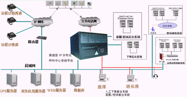物流是商業(yè)發(fā)達(dá)社會(huì)必然高速度發(fā)展的產(chǎn)業(yè)之一,不僅僅要求物品從供應(yīng)地向接收地的實(shí)體流動(dòng)過(guò)程,同時(shí)也是信息流和資金流的過(guò)程,根據(jù)實(shí)際不同的需要,需要運(yùn)輸、儲(chǔ)存、裝卸、搬運(yùn)、包裝、流通加工、配送、信息處理等基本過(guò)程有機(jī)結(jié)合,從而完成用最短的時(shí)間合理將物品運(yùn)向目的地。在整個(gè)物流過(guò)程中,涉及到的各個(gè)環(huán)節(jié),分散在不同的區(qū)域,需要一個(gè)信息平臺(tái)將整個(gè)物流環(huán)節(jié)聯(lián)接起來(lái),及時(shí)把握客戶(hù)的定貨需求,進(jìn)行車(chē)輛的調(diào)度管理,庫(kù)存管理以及票據(jù)管理等,力求實(shí)現(xiàn)用最少的庫(kù)存,最短的運(yùn)輸距離滿(mǎn)足客戶(hù)的需求,F(xiàn)代物流企業(yè)與以往的物流企業(yè)不同,不僅僅局限于物流中的某一個(gè)環(huán)節(jié),而是普遍采用了信息化管理技術(shù),如ERP、物流管理(LM)、SCM等應(yīng)用系統(tǒng),并通過(guò)Internet將遍布在各地的物流中心與客戶(hù)連接起來(lái),形成一個(gè)高效率的物流配送網(wǎng)絡(luò)。建立在奧迪堅(jiān)IPDCC的分布式呼叫中心平臺(tái)上的光大科技物流客戶(hù)服務(wù)系統(tǒng),以IP技術(shù)為核心在網(wǎng)絡(luò)上構(gòu)建一個(gè)語(yǔ)音和數(shù)據(jù)的統(tǒng)一平臺(tái),在一臺(tái)服務(wù)器上融合了CTI、PBX、ACD、VoIP、Voice、Mail,Recording,Call