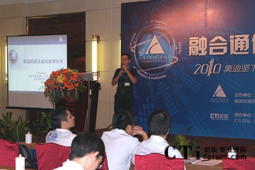 CTI論壇(ctiforum)9月10日消息(記者 楊毅):2010年9月9日奧迪堅在廣州市嘉鴻華美達廣場酒店舉辦的“下一代融合通信平臺華南研討會” 圓滿落下帷幕。本次會議以 “融合通信” 為主題,將最新的由“IPT、IPCC、UC和Mobility”四個部分組成的融合通信技術(shù)完美呈現(xiàn)在嘉賓眼前,吸引了業(yè)界眾多知名廠商和媒體,并得到了奧迪堅在各個行業(yè)的新老客戶的積極響應(yīng)和參與。通過奧迪堅的精彩主題演講、現(xiàn)場的情景秀表演和眾多案例分享等多種形式,與合作伙伴及嘉賓共同探討融合通信技術(shù)該如何發(fā)展、解讀渠道新政策、同時更加深入了解奧迪堅產(chǎn)品,提高合作伙伴在市場上的競爭力。CTI論壇(m.skybaby168.com)獨家承辦此次會議,并進行全程報道。