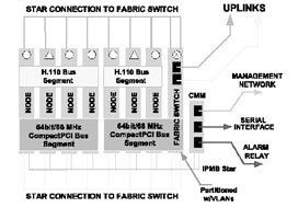 如果我們采用基于CompactPCI標(biāo)準(zhǔn)的刀片服務(wù)器系統(tǒng)來實(shí)現(xiàn),系統(tǒng)可能就是完全另外一種樣子(如圖1),這樣的實(shí)現(xiàn),首先系統(tǒng)體積小,只要一個刀片服務(wù)器機(jī)箱;第二,系統(tǒng)基于標(biāo)準(zhǔn)的體系架構(gòu),開發(fā)和維護(hù)容易,成本低廉;第三,系統(tǒng)非常好地集成了語音通信和IP通信,易于部署增值電信業(yè)務(wù);第四,系統(tǒng)具有較好的可擴(kuò)展性,因?yàn)楸嘲逄峁┝素S富的帶寬資源,同時單位空間內(nèi)豐富的插槽,可以安裝更多的服務(wù)器刀片,提供了充足的計(jì)算資源;第五,系統(tǒng)還可以利用各種高可靠性和高可管理性的特點(diǎn)。