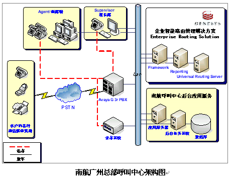 eSOON & Genesys為南航提供的解決方案包括:Genesys 平臺(tái)架構(gòu)(Framework),以及ERS企業(yè)智能路由解決方案(Enterprise Routing Solution)。建成以廣州為中心,全國(guó)分布而集中式接近200坐席的呼叫中心,并于本年開始進(jìn)行語(yǔ)音/數(shù)據(jù)聯(lián)網(wǎng)。
