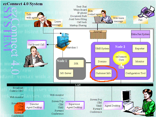 作為一種成功的企業(yè)應(yīng)用案例,這種方案已經(jīng)成功的應(yīng)用在我們的企業(yè)級(jí)多媒體呼叫中心 ezConnect產(chǎn)品中,該產(chǎn)品能同時(shí)處理傳統(tǒng)呼叫中心的電話請(qǐng)求和以互聯(lián)網(wǎng)為中心的Web 請(qǐng)求,同時(shí)配備多種實(shí)時(shí)交流手段,軟電話功能和基于web 的文本交談,圖片共享,白板,文檔推送,IP電話,UMS, SMS 和WAP 等為客戶提供很方便且實(shí)用的功能, 并且提供基于特定技能路由的分配器,同時(shí)處理電話和Web請(qǐng)求。而且同時(shí)支持多種語(yǔ)言并提供統(tǒng)一的配置工具。當(dāng)該請(qǐng)求到達(dá)座席時(shí),在座席的桌面上彈出客戶的基本信息和交易信息,座席可以根據(jù)這些信息給客戶提供更加個(gè)性化的服務(wù)。本文就針對(duì)該產(chǎn)品的實(shí)際開(kāi)發(fā)和實(shí)現(xiàn), 以及工作中的一些感想來(lái)與大家共同探討客戶信息管理的應(yīng)用和前景。