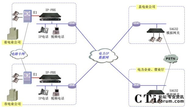 目前電網(wǎng)公司行政交換網(wǎng)仍延用傳統(tǒng)的程控電話交換系統(tǒng)組網(wǎng),部分縣級電業(yè)公司、電力企業(yè)由于各種原因未接入電網(wǎng)公司行政電話交換網(wǎng),與電網(wǎng)公司(供電局)間必須通過運營商的PSTN電話網(wǎng)絡(luò)來實現(xiàn)。隨著電網(wǎng)公司與各代管縣電業(yè)公司、各電力企業(yè)業(yè)務(wù)聯(lián)系增加,企業(yè)、行業(yè)管理日益頻繁,為提高企業(yè)的工作效率,節(jié)省企業(yè)話費開支,采用傳統(tǒng)的電話交換系統(tǒng)不能實現(xiàn)網(wǎng)內(nèi)通信。