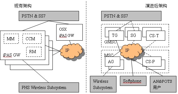 GW軟件改造而來,只需新增CS-P即可?偟膩碚f,核心網(wǎng)的演進(jìn)只是增加CS-P、擴(kuò)容CS-T、原有的iPAS GW軟件升級(jí)為TG/AG,就可以建立其一個(gè)具有多種終端接入能力的開放性多媒體VoIP移動(dòng)軟交換網(wǎng)絡(luò),而原有的PHS系統(tǒng)功能又不會(huì)受到影響。