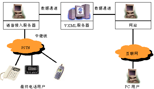 IVIP以VoiceXML為核心技術(shù)。VoiceXML是基于XML的國(guó)際標(biāo)準(zhǔn)語(yǔ)音可擴(kuò)展標(biāo)識(shí)語(yǔ)言,它象HTML定義圖形化網(wǎng)頁(yè)界面一樣定義了語(yǔ)音界面。