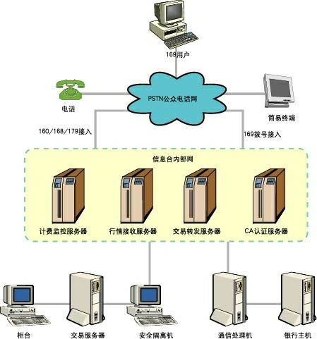 4.計(jì)費(fèi)監(jiān)控服務(wù)器:對股民電話委托的特定信息服務(wù)進(jìn)行計(jì)費(fèi)管理。