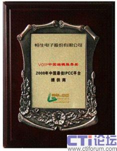 恒生及HSIPCC,已連獲多項殊榮: 2008年中國最佳呼叫中心“金耳嘜大獎”之“2008中國最佳呼叫中心年度技術產(chǎn)品獎”;2008年度全球IP通信大獎之“2008年中國最佳IP呼叫中心提供商”、VOIP中國網(wǎng)之“2008年中國最佳IPCC平臺提供商”、 中國惟一國家級呼叫中心行業(yè)協(xié)會CNCCA 之“2007年度中國最佳呼叫中心年度技術產(chǎn)品”獎等。