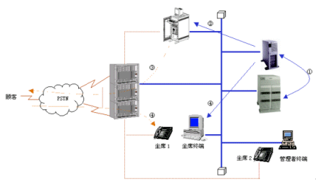 ④ 當(dāng)出現(xiàn)空閑的坐席時,CICR將該客戶的電話接到空閑坐席上。