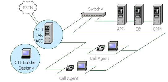 。。CTI Builder本身是一個(gè)軟交換機(jī),具有普通程控交換機(jī)的功能,如:分機(jī)切轉(zhuǎn)、外線呼入、內(nèi)線呼出、轉(zhuǎn)接電話、代接電話等等,同時(shí)還具有一些高級(jí)功能如:語(yǔ)音信箱、排隊(duì)機(jī)、內(nèi)線組呼叫、高級(jí)選線等功能。也就是說,系統(tǒng)已經(jīng)提供了呼叫中心通用的功能,用戶只需要定義自己的業(yè)務(wù)而不必關(guān)心呼叫中心的內(nèi)部交換。