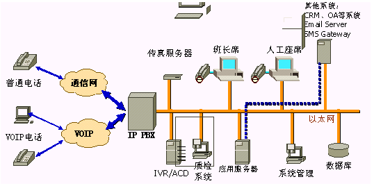 IP PBX系統代替?zhèn)鹘yPBX交換機系統,實際上是一個SIP或H.323交換機,內部分機采用純IP電話,提供呼叫路由、話務員分組管理、呼叫控制等功能,支持市場上主流IP