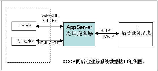 。。XCCP同其他系統(tǒng)通信都是通過應(yīng)用服務(wù)器進(jìn)行的,無論是IVR還是座席業(yè)務(wù)邏輯模塊都是運行在應(yīng)用服務(wù)器上的Web應(yīng)用服務(wù)器上,所以Web服務(wù)器支持的通信技術(shù)(也就是系統(tǒng)數(shù)據(jù)接口)能支持的技術(shù),XCCP都能支持,這并不是XCCP特有的技術(shù),而是XCCP的開放式系統(tǒng)結(jié)構(gòu)決定了它能充分利用現(xiàn)有技術(shù)同其他系統(tǒng)互聯(lián)。