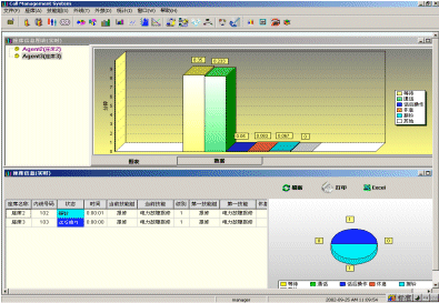 座席狀態(tài)實時監(jiān)控圖形顯示;線路狀態(tài)實時監(jiān)控圖形顯示;按時間以及不同條件進行查詢的完善的歷史數(shù)據(jù)分類分析及統(tǒng)計;以統(tǒng)計報表形式提供中心各狀態(tài)及業(yè)績信息作為考評依據(jù);按Excel方式輸出報表,提供進一步編輯功能。其所生成的上百張報表,可以協(xié)助企業(yè)有效管理資源,檢查成本,預(yù)測改善現(xiàn)有運作的潛在需求。