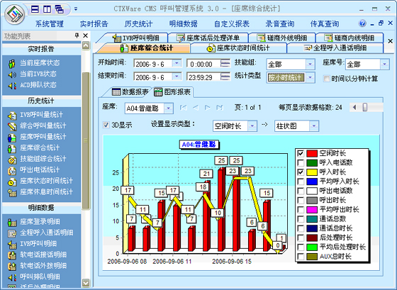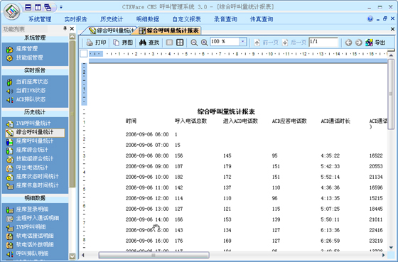 為了解整個(gè)呼叫中心系統(tǒng)的運(yùn)行狀況和工作人員的工作情況,系統(tǒng)由專門的數(shù)據(jù)統(tǒng)計(jì)功能。數(shù)據(jù)統(tǒng)計(jì)功能對(duì)各種信息資料進(jìn)行管理,數(shù)據(jù)統(tǒng)計(jì)功能負(fù)責(zé)收集、統(tǒng)計(jì)系統(tǒng)資源的利用情況、各項(xiàng)業(yè)務(wù)的執(zhí)行情況、系統(tǒng)整體運(yùn)行情況,并可定期刷新數(shù)據(jù)形成報(bào)表。