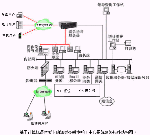 基于計算機語音板卡的海關(guān)多媒體呼叫中心系統(tǒng)一期工程網(wǎng)絡(luò)拓?fù)浣Y(jié)構(gòu)圖