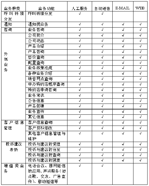 F、通知類業(yè)務(wù):對某些特定的對象通過自動呼出或人工呼出進行通知,實現(xiàn)政策法規(guī)、專題的通知,方式可以是電話、傳真、eMail、短消息、網(wǎng)站等;