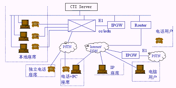 | 支持多種座席類型 | 座席類型包括:PC+耳麥、PC+電話、PC+IP電話、普通電話和IP電話。具有強(qiáng)大的坐席應(yīng)用:支持事件管理、外撥管理、客戶信息管理、公告欄等。 提供完善的遠(yuǎn)程坐席方案,在遠(yuǎn)程坐席能實現(xiàn)數(shù)據(jù)、語音同步。 支持分布式呼叫中心。 |