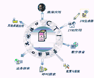投訴建議,錄音留言,語音信箱管理,轉(zhuǎn)有關(guān)部門辦公電話,自動語音服務(wù),人工座席服務(wù),呼出服務(wù)等為一體的客戶服務(wù)軟硬件平臺,充分整合現(xiàn)有資源,建立起對現(xiàn)有計算機技術(shù)支持系統(tǒng)等業(yè)務(wù)系統(tǒng)的(如ERP系統(tǒng),售后服務(wù)系統(tǒng)等)數(shù)據(jù)加工、分析、再應(yīng)用的汽車制造企業(yè)具有基本CRM功能的呼叫中心系統(tǒng)/客戶服務(wù)中心的一體化軟硬件CTI平臺。