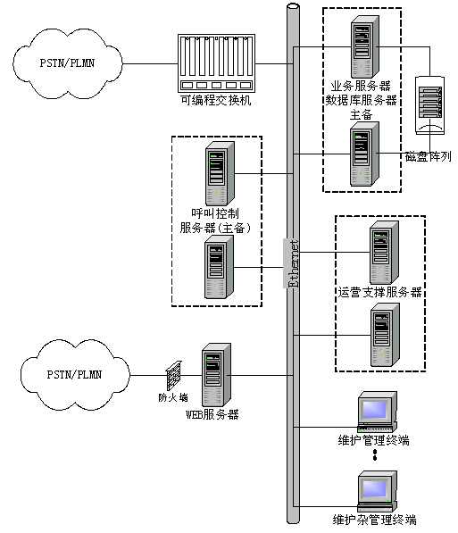 整個業(yè)務平臺的硬件由下面幾部分組成: