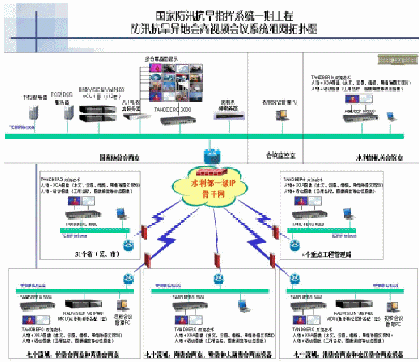 他們調查了當時水利部及下屬機構的網絡現(xiàn)狀:即將安裝的國家防汛抗旱指揮異地會商視頻會議系統(tǒng)會運行在"國家防汛抗旱指揮系統(tǒng)"一期工程骨干網上,水利部網絡中心到7