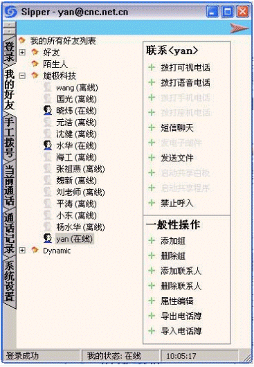 可以在這里進行所給的各項操作,選擇添加聯(lián)系人,輸入某個用戶的各項個人信息,確認后,這個用戶就會被添加到相應(yīng)的組中,并且會顯示出該用戶狀態(tài)。