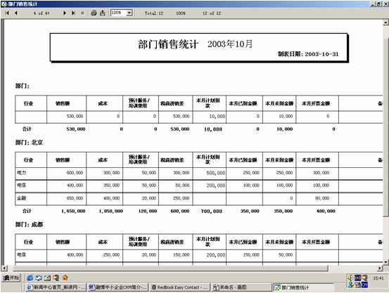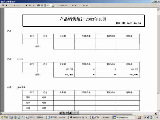 可對客戶(雇員)合同,根據(jù)合同階段、月份、合同金額、合同應(yīng)收應(yīng)付款、采購成本、客戶、銷售人員等條件進(jìn)行查詢和統(tǒng)計, 查詢統(tǒng)計結(jié)果以詳細(xì)列表及圖示進(jìn)行顯示。