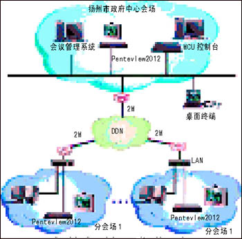 揚(yáng)州市電子政務(wù)是江蘇省第一家電子政務(wù)試點(diǎn)單位, 該項(xiàng)目建成后,在電子政務(wù)專(zhuān)網(wǎng)上實(shí)現(xiàn)市、區(qū)縣兩級(jí)較高圖像和聲音質(zhì)量的交互式視頻會(huì)議。