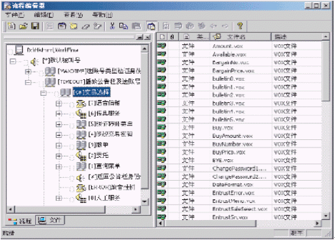 ·采用Windows Explorer風(fēng)格的樹形節(jié)點(diǎn)編輯呼叫流程,同時可通過查看屬性查看每個業(yè)務(wù)節(jié)點(diǎn)上下級之間的關(guān)系。使用戶對IVR的整個呼叫流程,以及各個節(jié)點(diǎn)之間的關(guān)系一目了然。