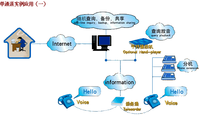 錄音記錄應(yīng)當(dāng)能夠方便地通過多種途徑回放,實(shí)現(xiàn)對(duì)錄音記錄資料的利用,這也是用戶配置電話錄音系統(tǒng)的最主要目的。回放可以通過我們公司開發(fā)生產(chǎn)的選件手持播放器回放,通過網(wǎng)絡(luò)回放,通過聲卡在其它計(jì)算機(jī)上回放等多種方式來實(shí)現(xiàn)。