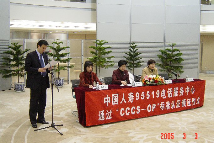下午2點(diǎn),在中國人壽保險(xiǎn)股份有限公司總部舉行了隆重的頒證儀式。中國人壽保險(xiǎn)股份有限公司總部及江蘇、四川、深圳分公司的95519呼叫中心順利通過CCCS標(biāo)準(zhǔn)認(rèn)證。其中,中國人壽總部及江蘇省分公司95519呼叫中心獲準(zhǔn)CCCS五星級認(rèn)證評定,四川省及深圳市95519呼叫中心獲準(zhǔn)CCCS四星級認(rèn)證評定。