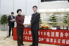 在頒證儀式上,信息產(chǎn)業(yè)部信息中心副主任、中國信息化推進(jìn)聯(lián)盟秘書長劉獻(xiàn)軍,中國信息化推進(jìn)聯(lián)盟客戶關(guān)系管理專業(yè)委員會常務(wù)副主任、《全國呼叫中心標(biāo)準(zhǔn)體系》制定與評審小組組長郭晨東分別向中國人壽總部及三地分公司頒發(fā)了CCCS認(rèn)證證書。