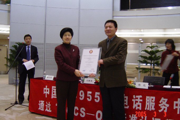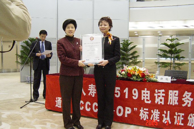 中國人壽保險(xiǎn)股份有限公司業(yè)務(wù)管理部副總經(jīng)理?xiàng)罴t在頒證儀式上發(fā)表了熱情洋溢的講話。她說,中國人壽保險(xiǎn)股份有限公司在中國的壽險(xiǎn)業(yè)中具有舉足輕重的地位、良好的業(yè)績表現(xiàn)和遍布全國的機(jī)構(gòu)網(wǎng)絡(luò),一貫秉承"用專業(yè)和真誠贏得感動"的服務(wù)理念,力求通過"熱誠、規(guī)范、準(zhǔn)確、便捷"的服務(wù)回報(bào)廣大客戶多年以來的支持與信賴。中國人壽的呼叫中心自2001年建立以來,伴隨著公司的快速發(fā)展,在總分公司各級領(lǐng)導(dǎo)的關(guān)心、支持下,在各級中心管理人員和客服代表的共同努力下,在改善公司服務(wù)水平、提高客戶滿意度、促進(jìn)公司業(yè)務(wù)發(fā)展等方面正發(fā)揮著越來越重要的作用,呼叫中心自身也取得了長足的發(fā)展。