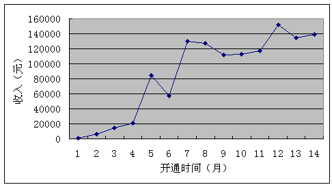 還是說回來。河北鐵通這個業(yè)務(wù)從60線開始穩(wěn)健起步,如圖所示,在3個月的磨合時間里,它主要依靠口碑傳播,每個月才兩萬元的收入,業(yè)務(wù)雖然開始贏利,但是并不可觀,怎樣才能快速提升業(yè)務(wù)價(jià)值?