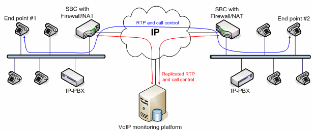 VoIP應(yīng)用的質(zhì)量監(jiān)控分為主動(dòng)式和被動(dòng)式兩種實(shí)現(xiàn)方式。主動(dòng)式的系統(tǒng)能產(chǎn)生呼叫,而被動(dòng)式的系統(tǒng)只是監(jiān)測進(jìn)行中的呼叫。兩種方法各有優(yōu)勢(shì)。VoIP監(jiān)控方案的架構(gòu)取決于網(wǎng)絡(luò)Edge設(shè)備的類型和結(jié)構(gòu)。有些大型企業(yè)采用的VoIP網(wǎng)絡(luò)配備了一種特殊設(shè)備,叫SBC(Session boarder controller),除了完成類似路由器的功能外,還能完成流量分配、數(shù)據(jù)/語音信號(hào)加密以及業(yè)務(wù)質(zhì)量控制等功能。此外,通過過濾和替換數(shù)據(jù)包內(nèi)的、與用戶有關(guān)的特定信息,SBC還能隱藏公司的網(wǎng)絡(luò)拓?fù)浣Y(jié)構(gòu)和用戶信息,不被外部的IP世界所知道。